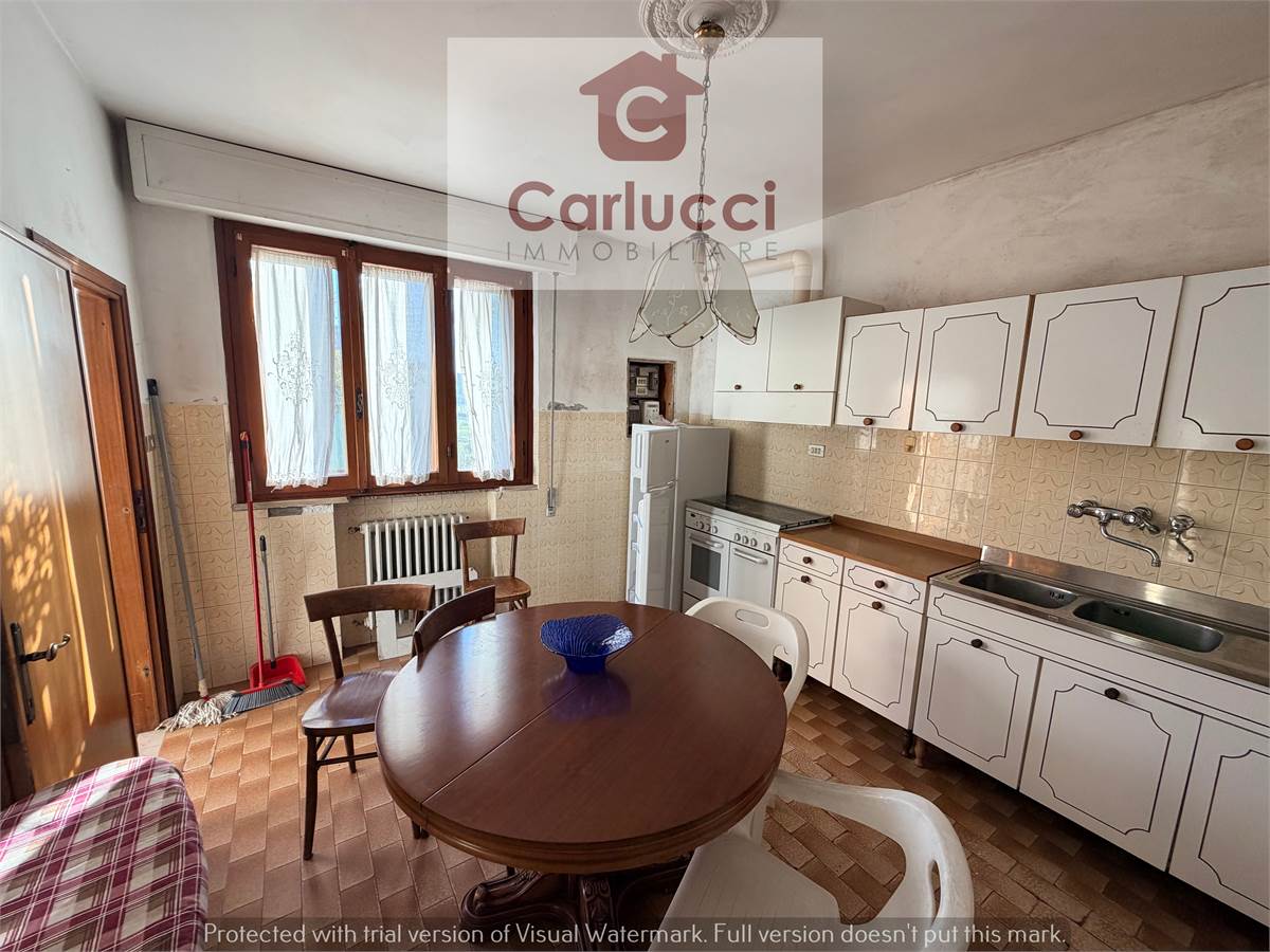 L’ingresso si apre al piano terra su una cucina abitabile, ampia e luminosa, perfetta per la vita quotidiana.